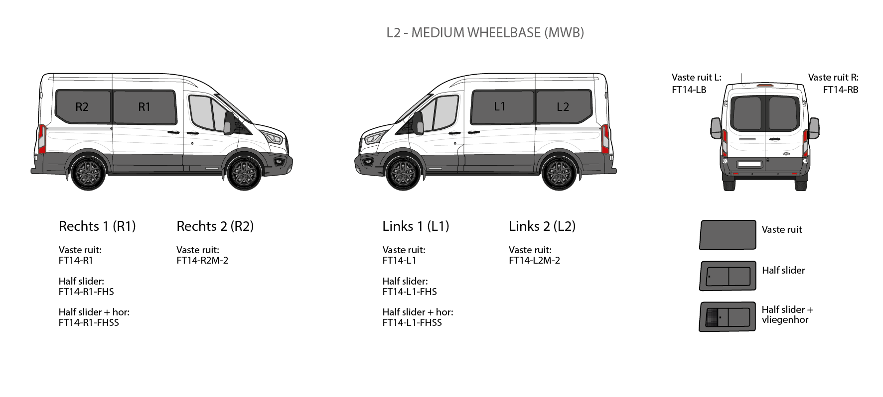 Ford Transit 14- L. voor bovenschuif met schuifdeur L1, L2, L3, L4 privacy